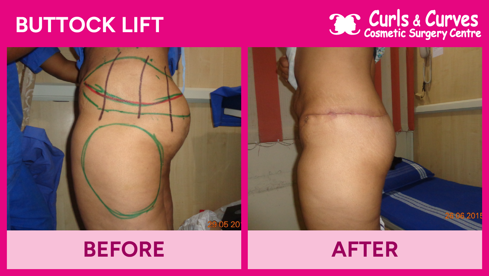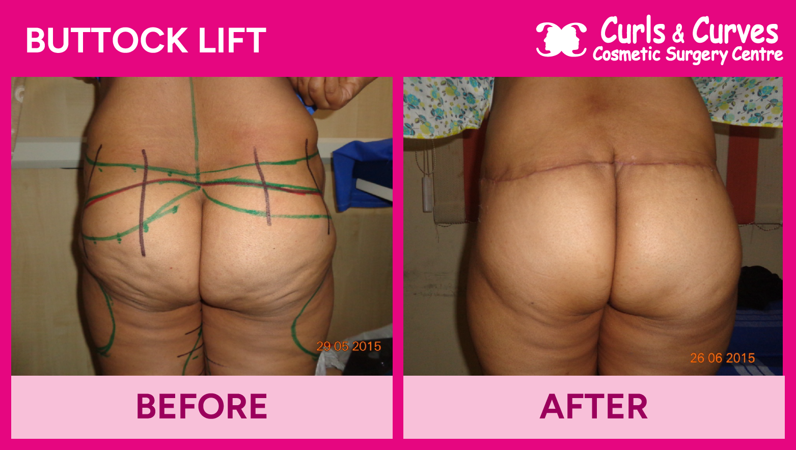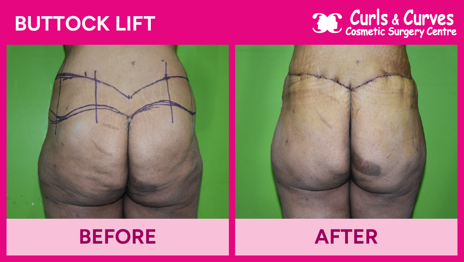 The results of Buttock Lift Surgery are life-changing. With the right technique, you can achieve a firmer, more youthful appearance in your buttocks and lower body. The before and after photos of previous patients at Curls & Curves show the dramatic improvement in contour and overall aesthetic, giving you a more sculpted, youthful look.